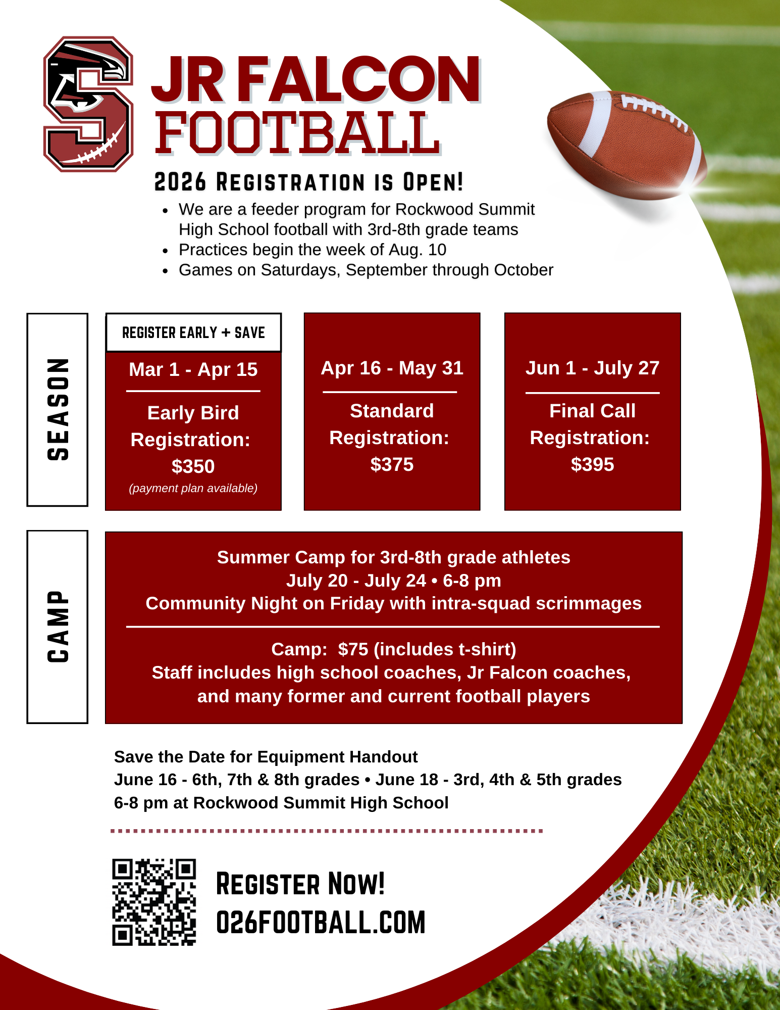 If your family has a financial situation that may make it difficult to pay the registration fee, please complete this application and email info@026football.com with questions.